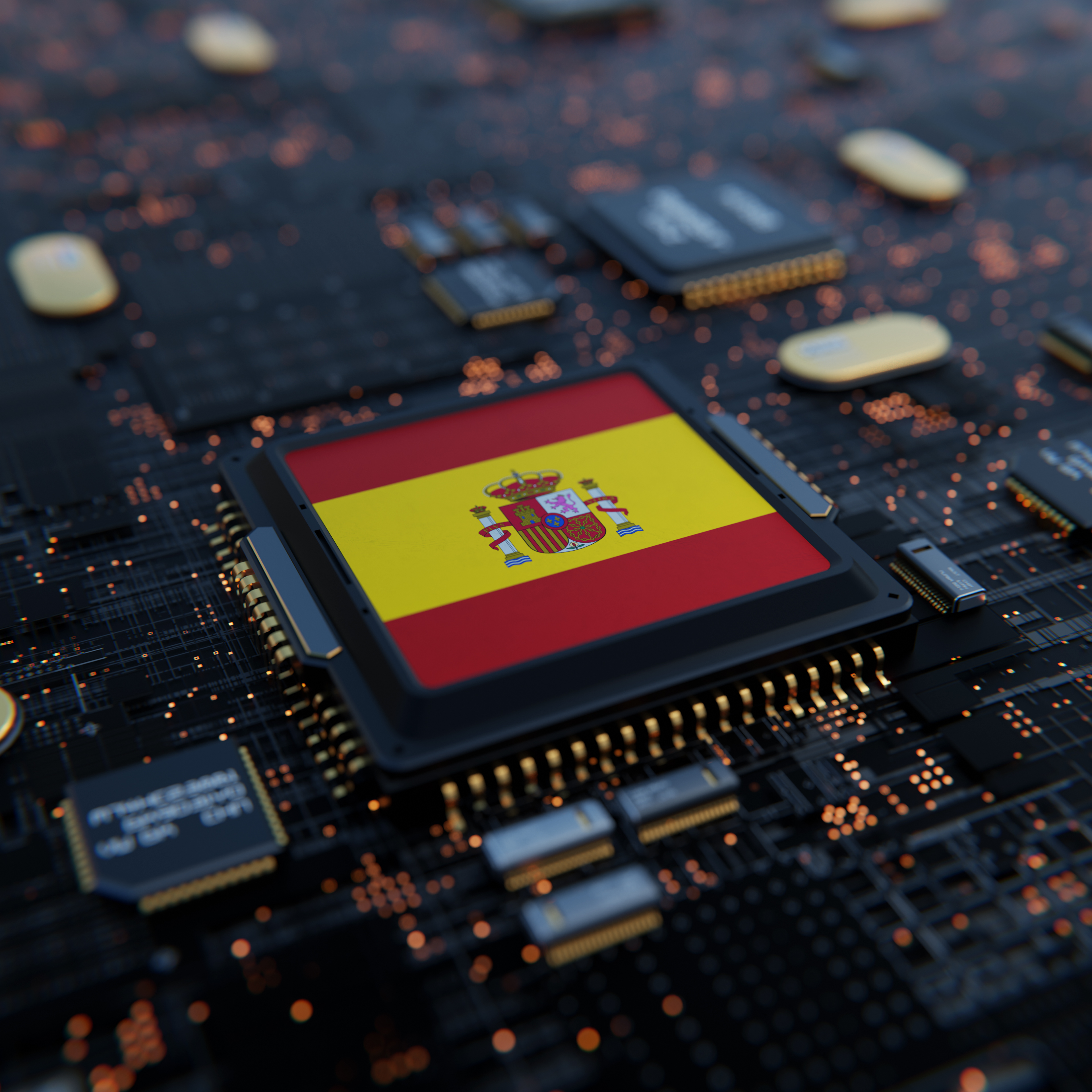 Flag of Spain on a processor, CPU or Chip