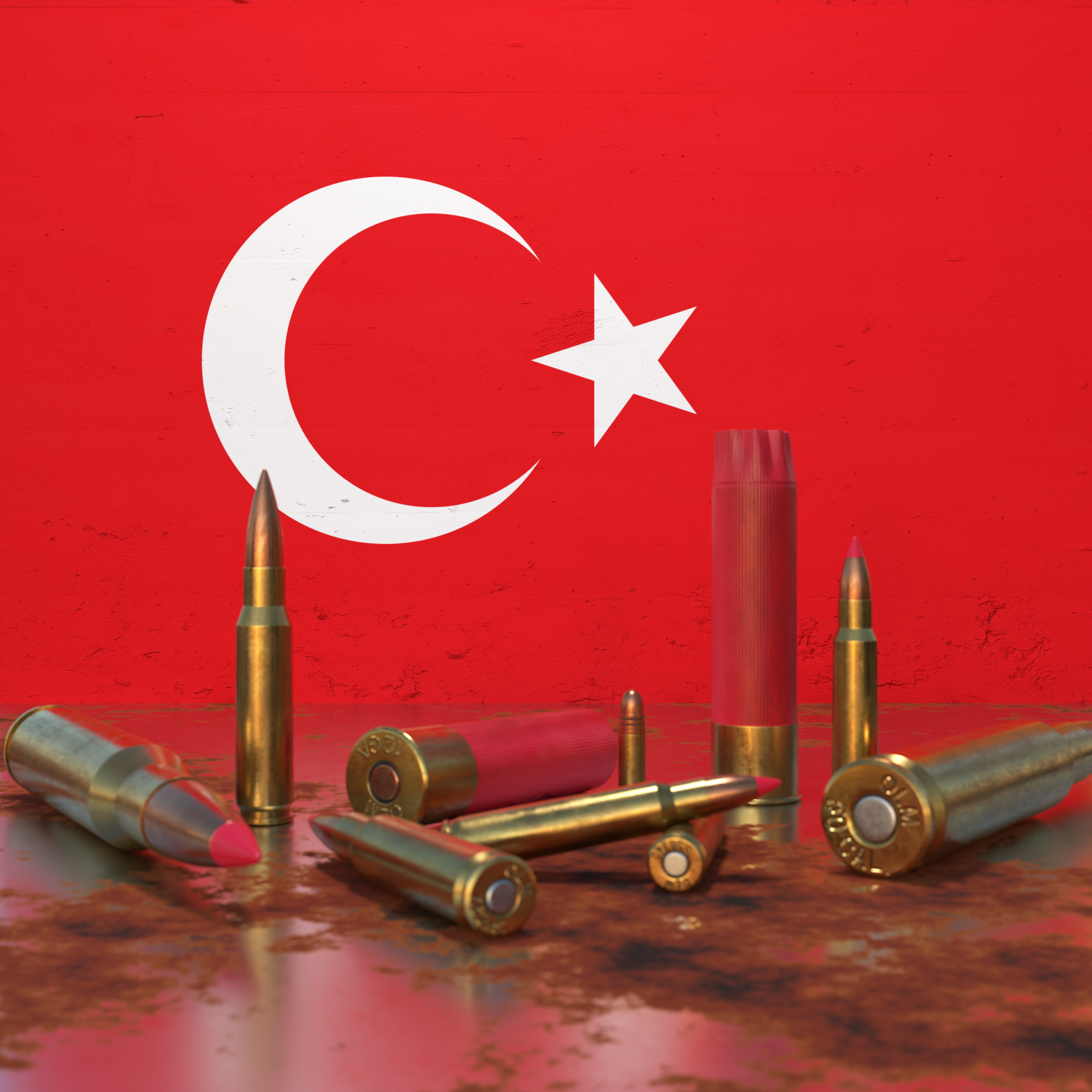 Bullets in front of Northern Cyprus flag