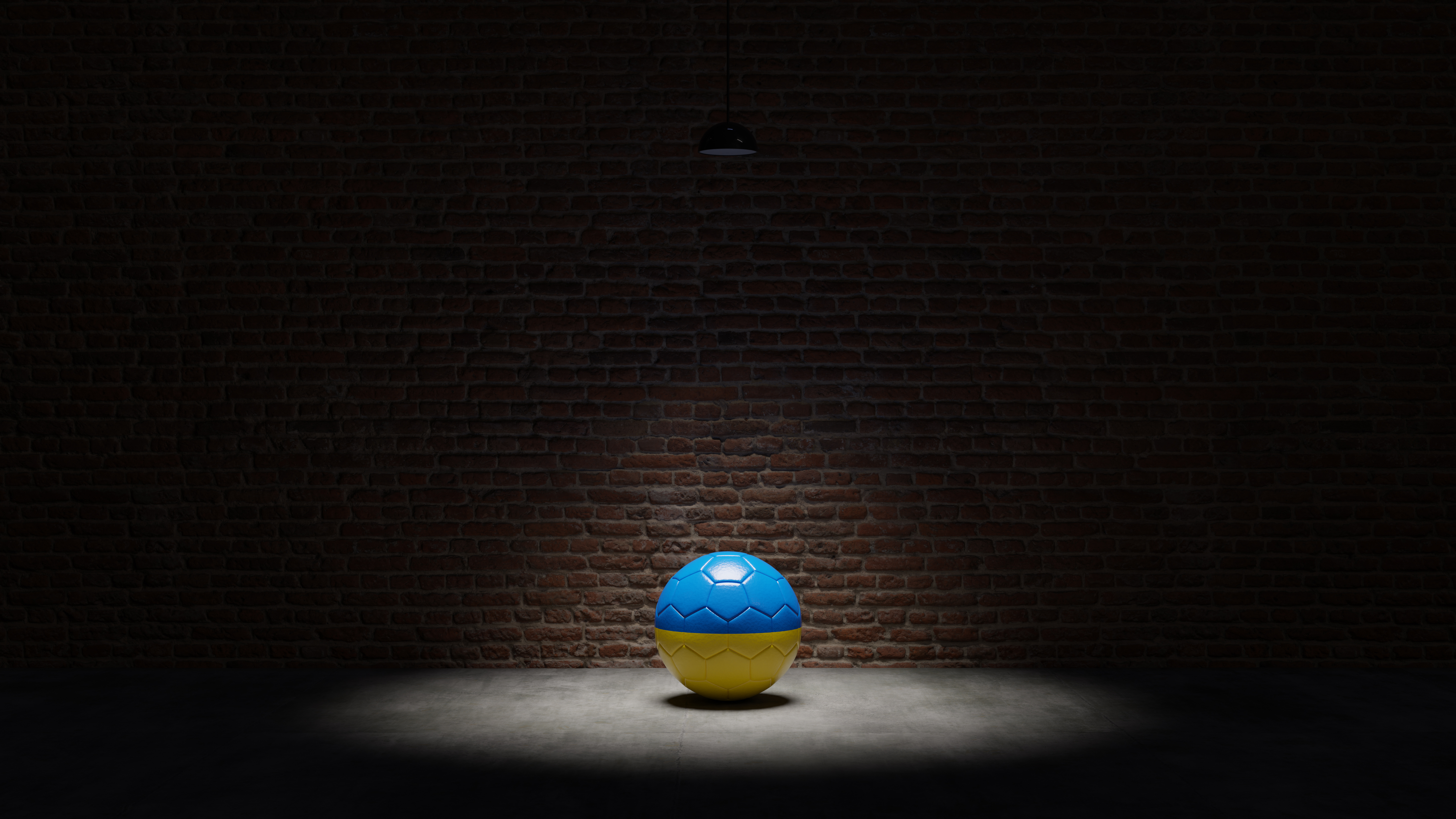 Flag of Ukraine on Soccer Ball Under Spotlight