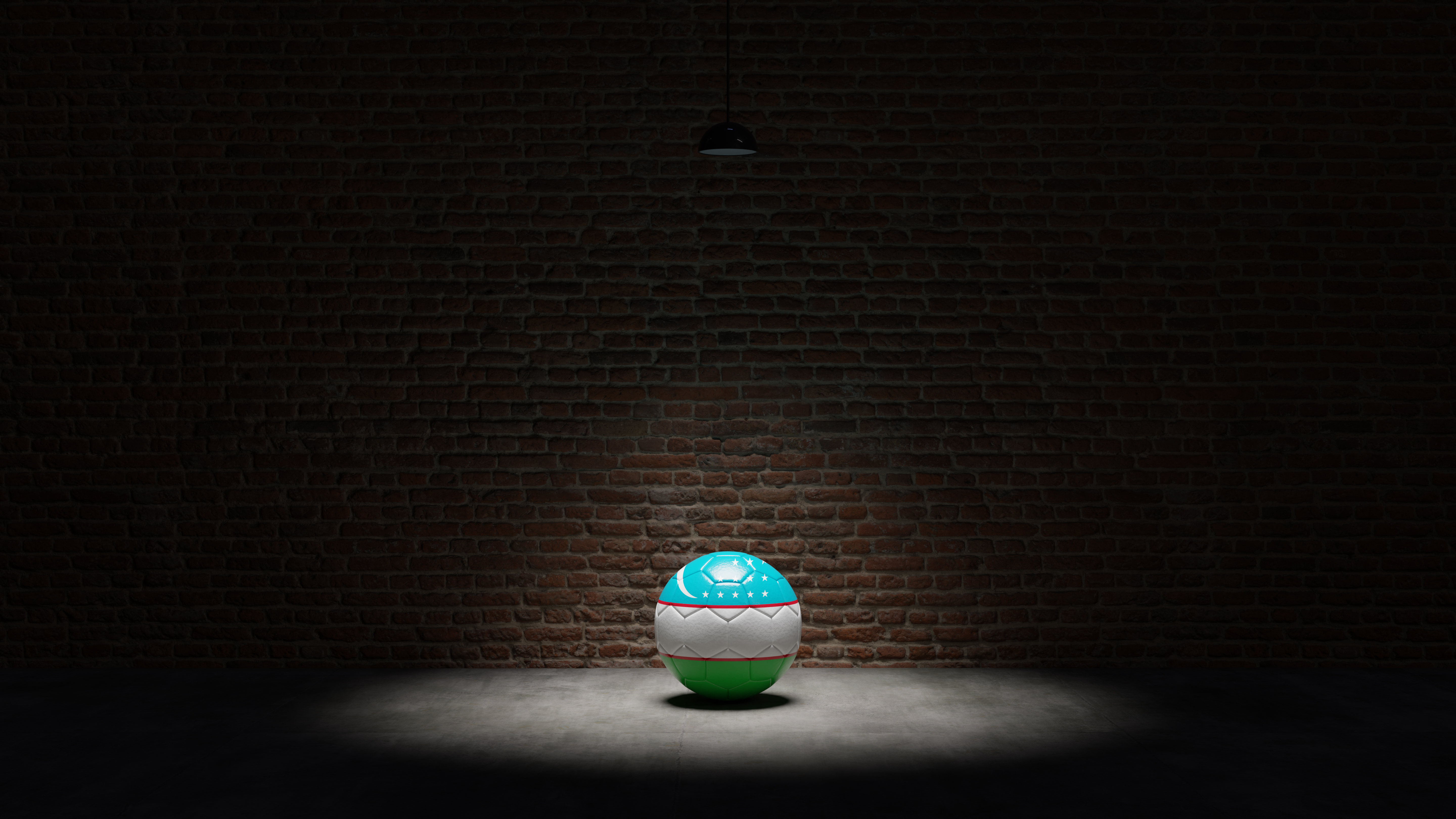Flag of Uzbekistan on Soccer Ball Under Spotlight