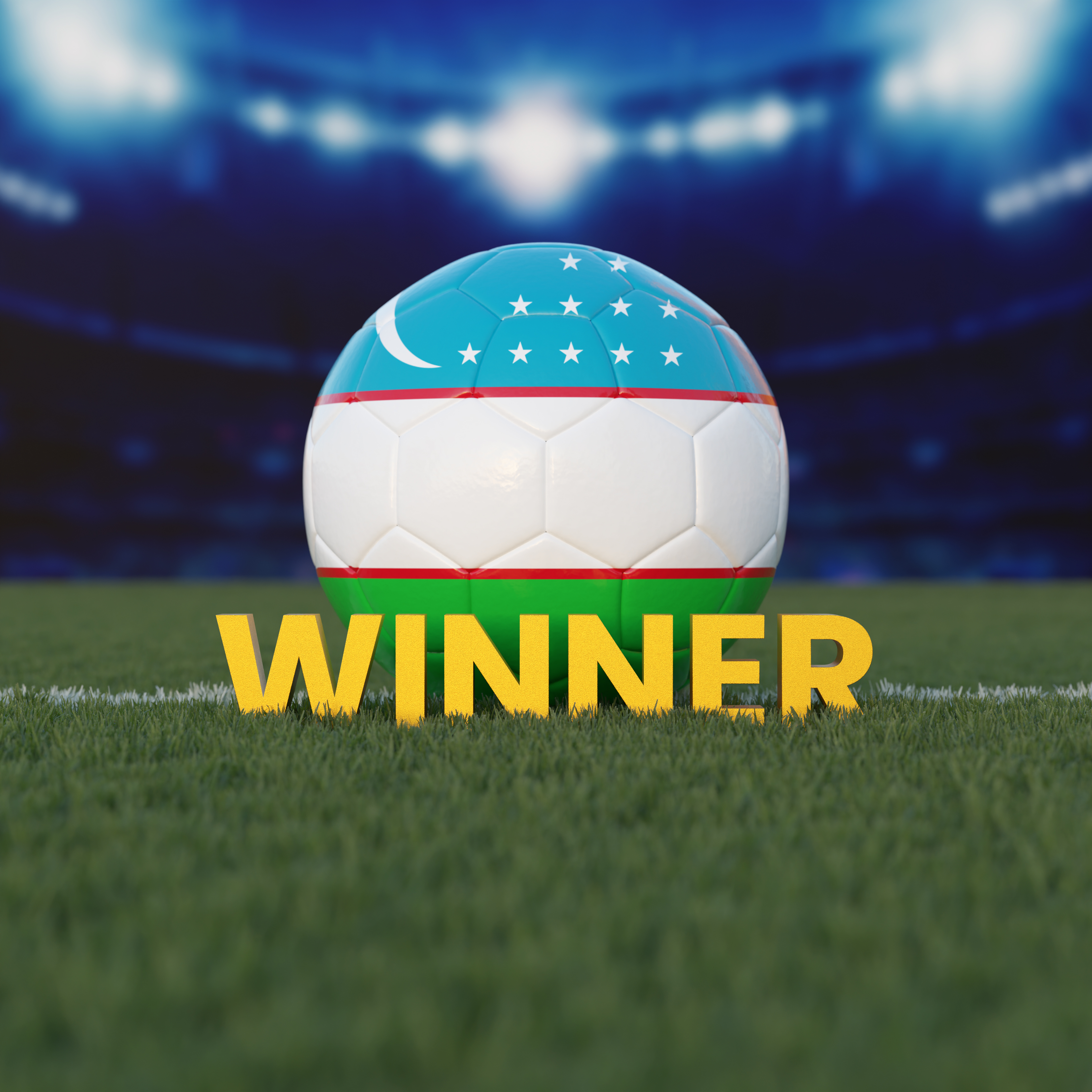 Flag of Uzbekistan On Soccer Ball With WINNER Text