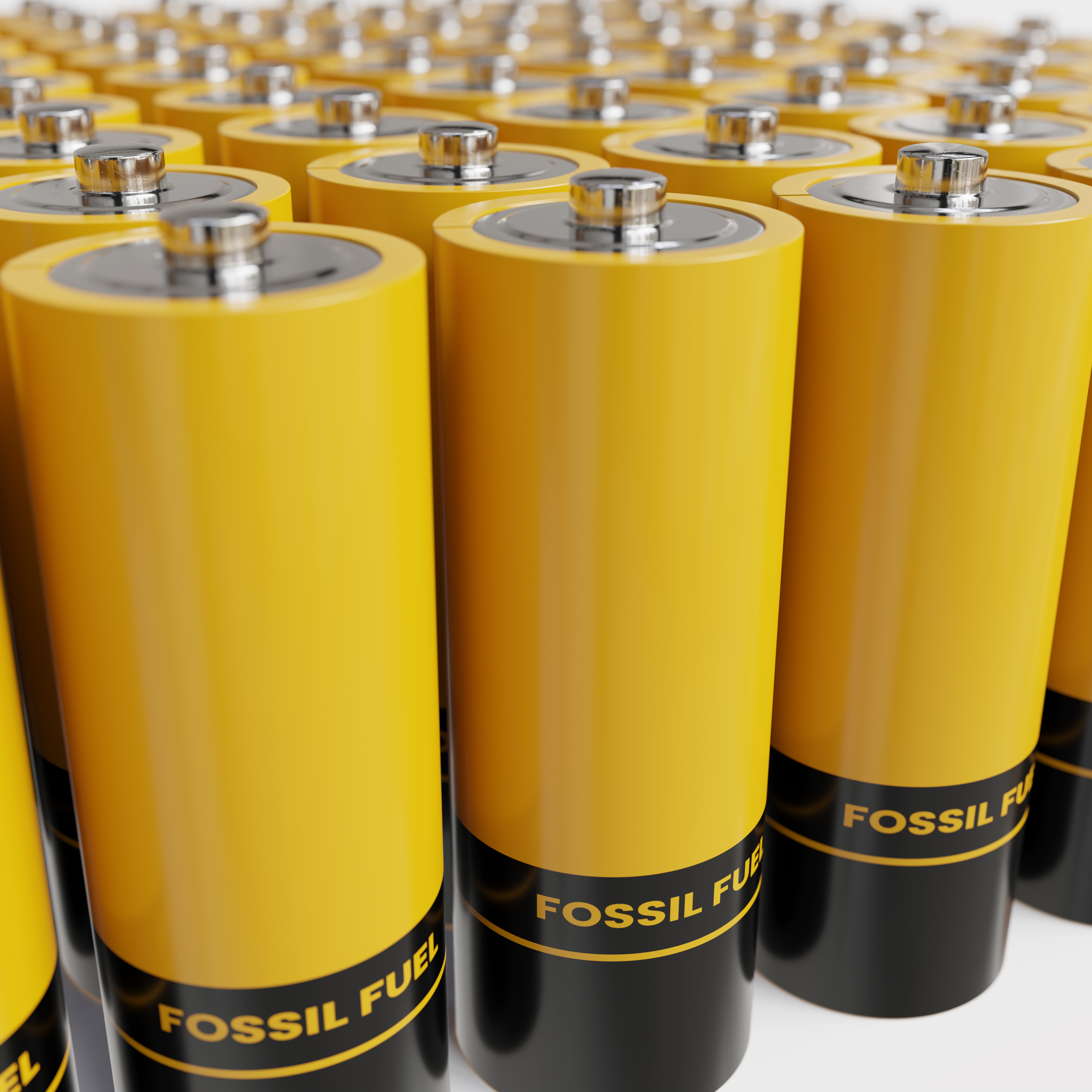 AA Batteries Labeled Fossil Fuel, Green Energy, Thermal Energy, and Nuclear Energy