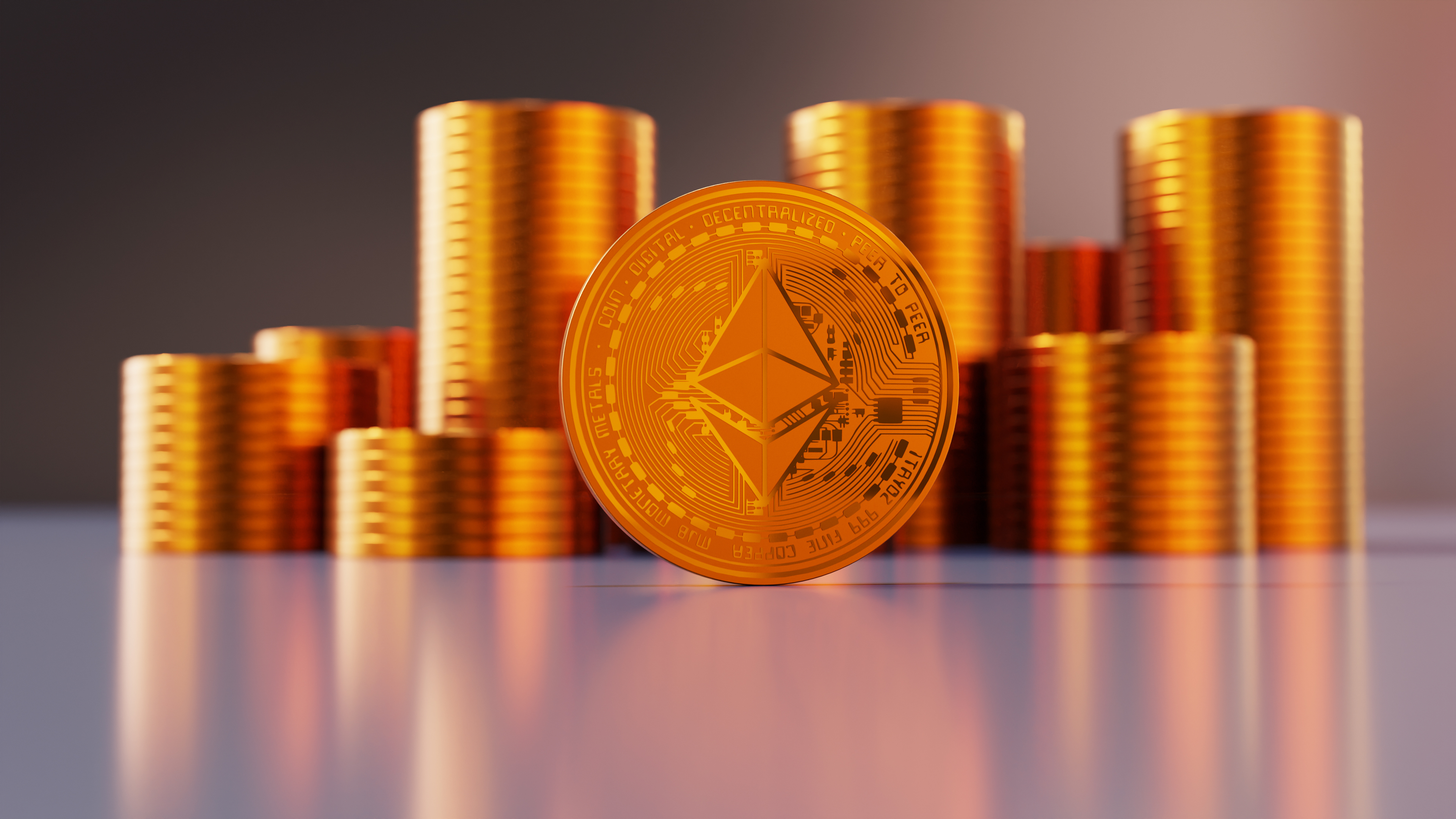 Golden Ethereum With Coins In The Background