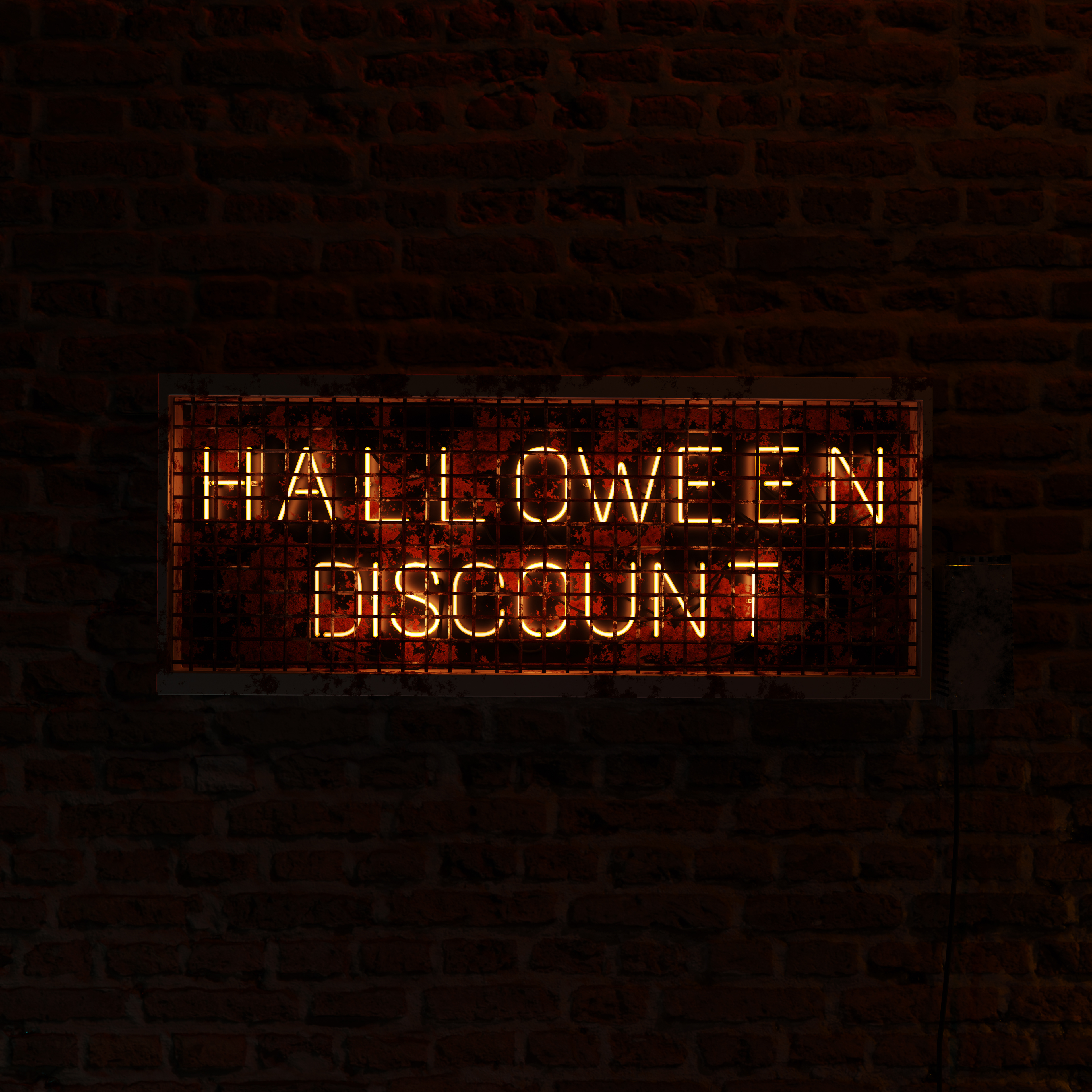 15 Percent Off Halloween Neon Light With Brick Wall Background