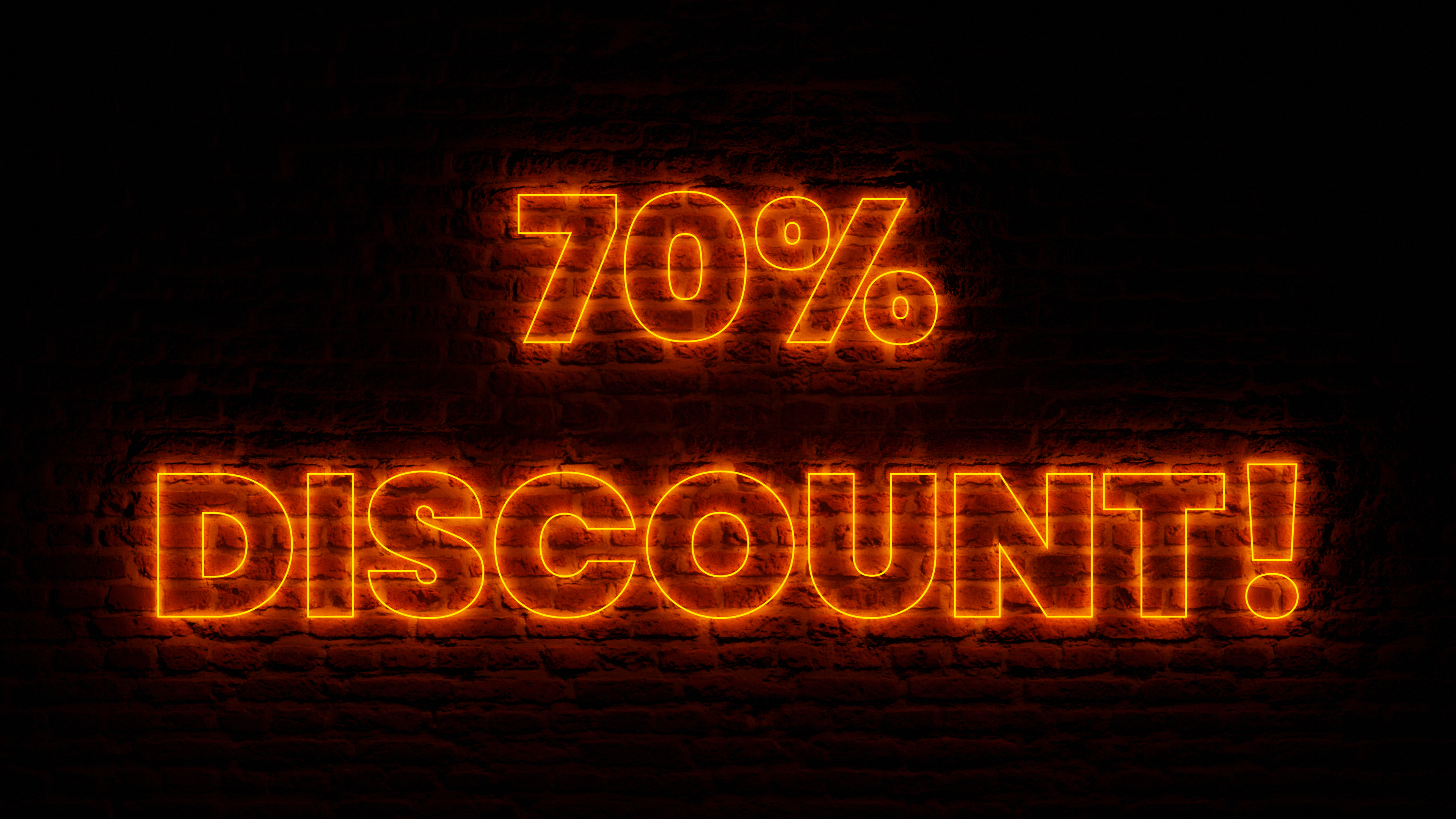 Yellow SUMMER DISCOUNT Fake Neon With Dark Background