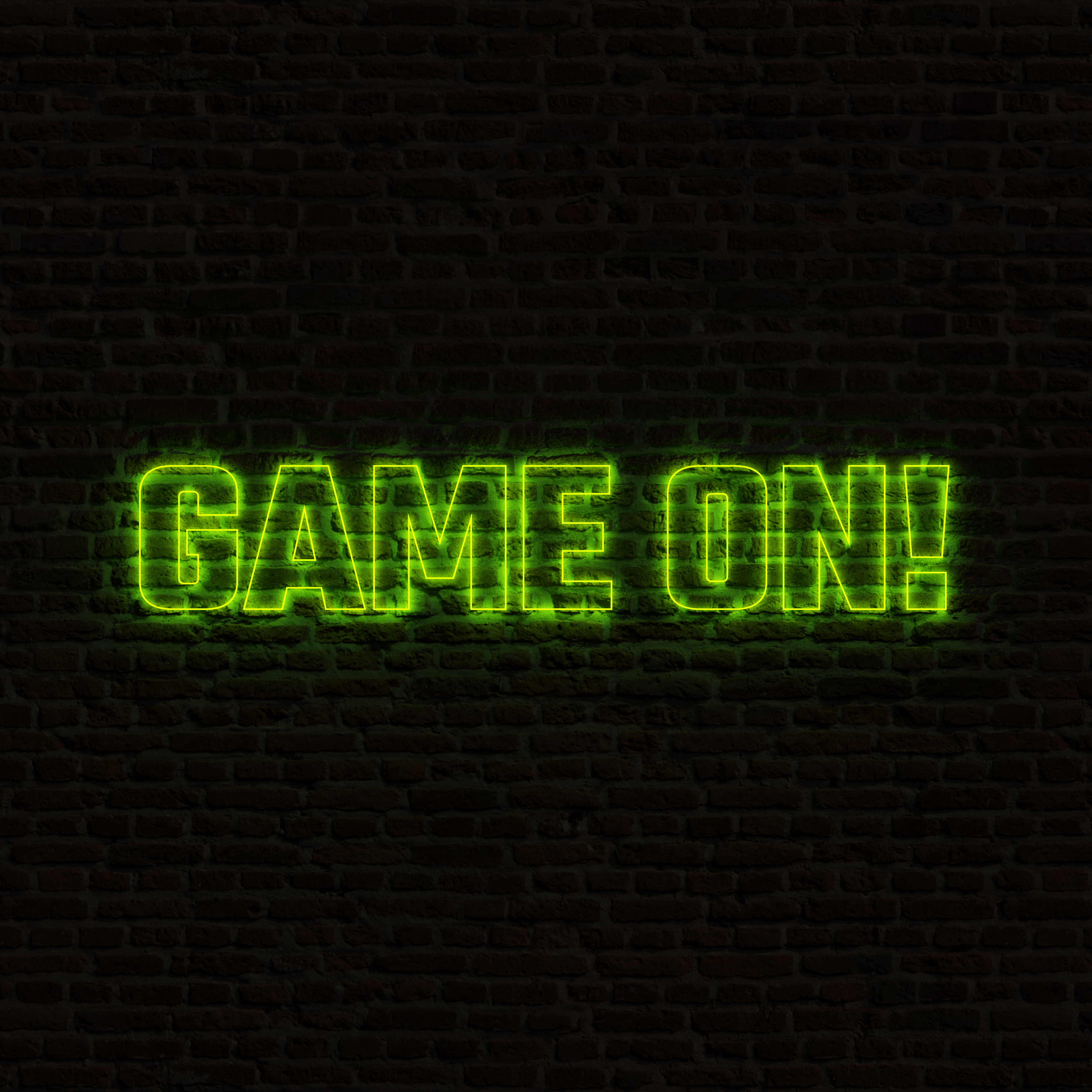 Red, Blue, Green Go Go Go neon sign With Brick Background