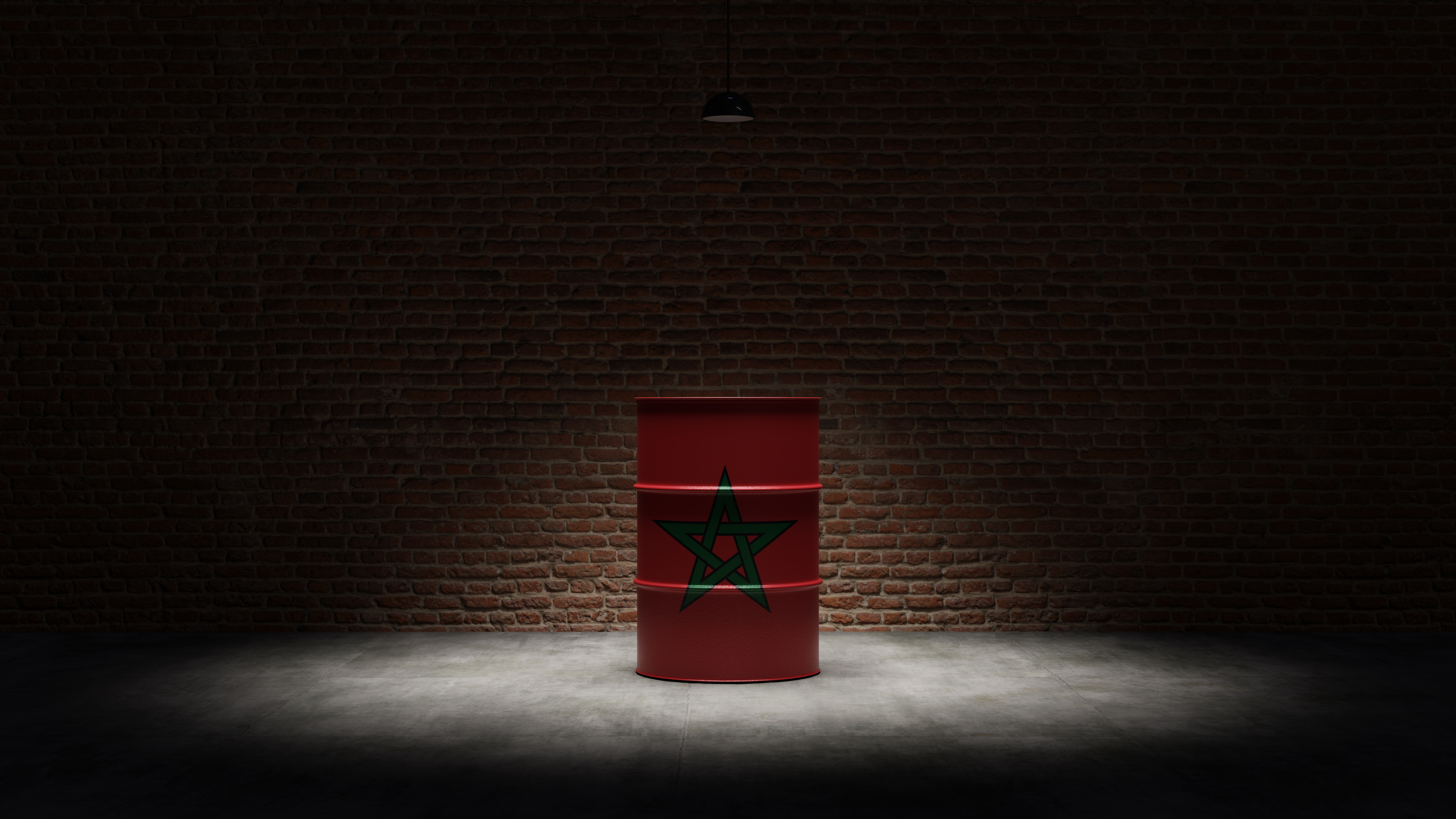 Oil barrel with the flag of Azerbaijan in front of a brick background