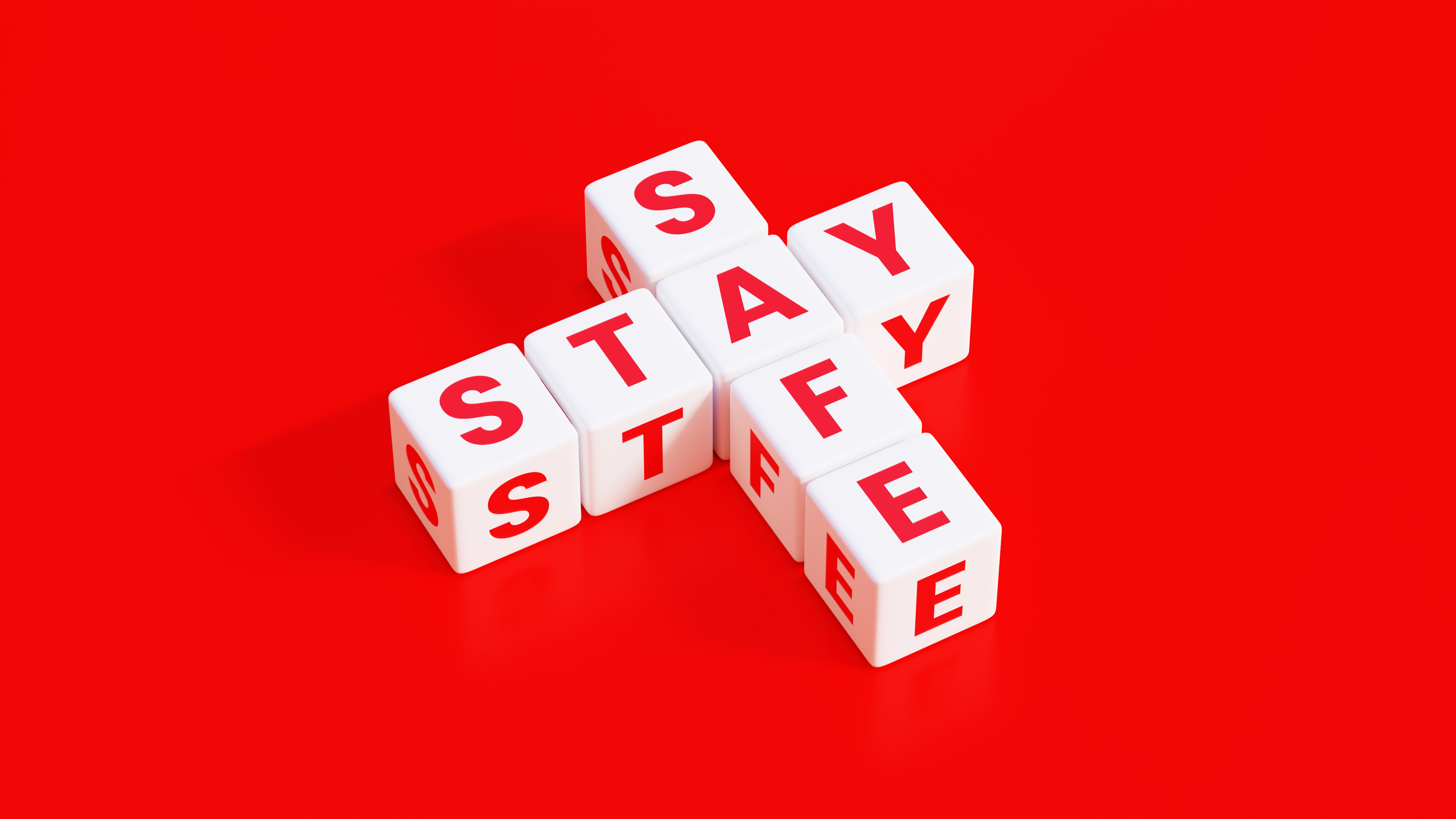 Red and White Stay Safe - Word On Plastic Blocks - With White Background-2