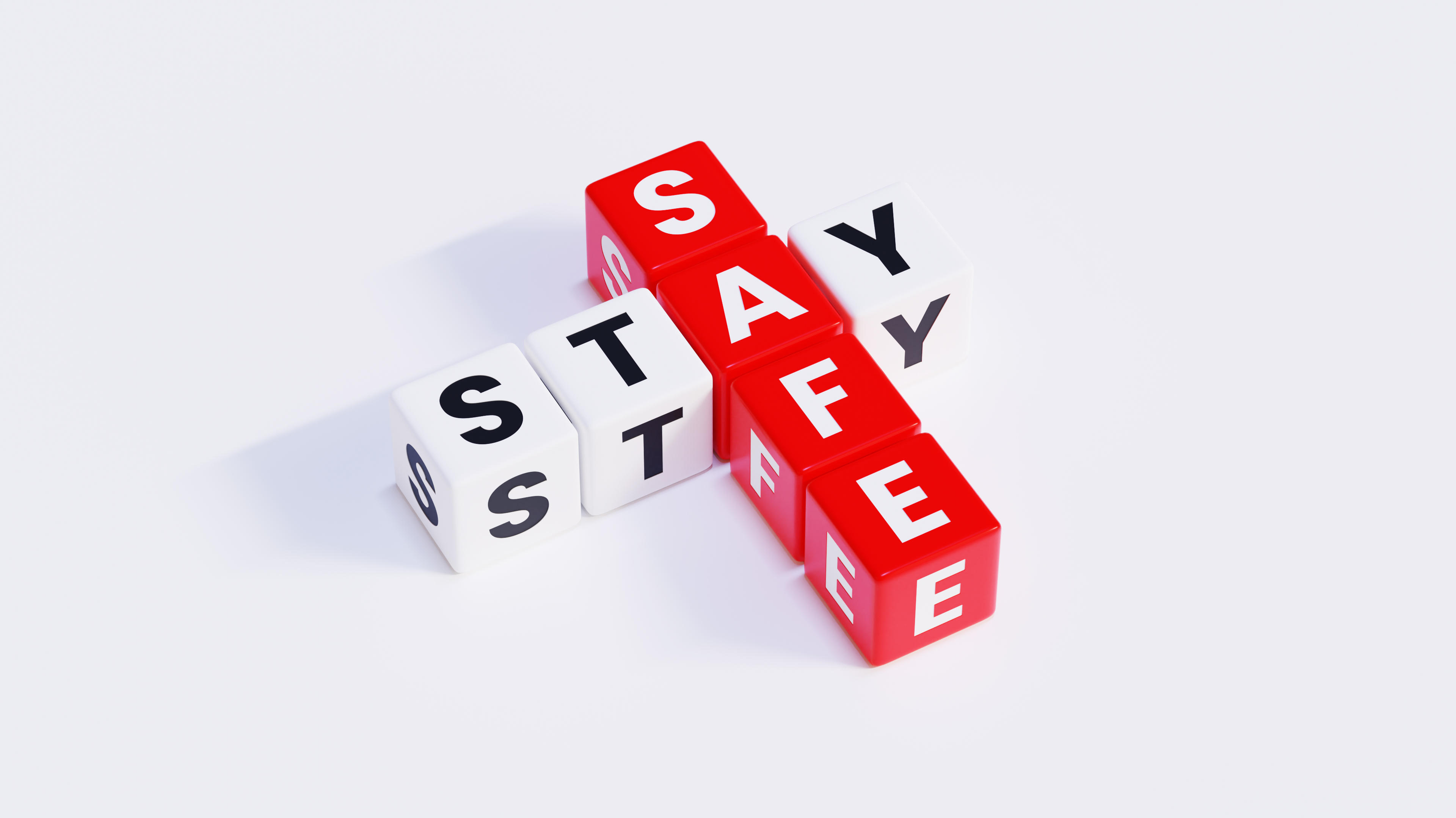 Red and White Stay Safe With White Background - Word On Plastic Blocks