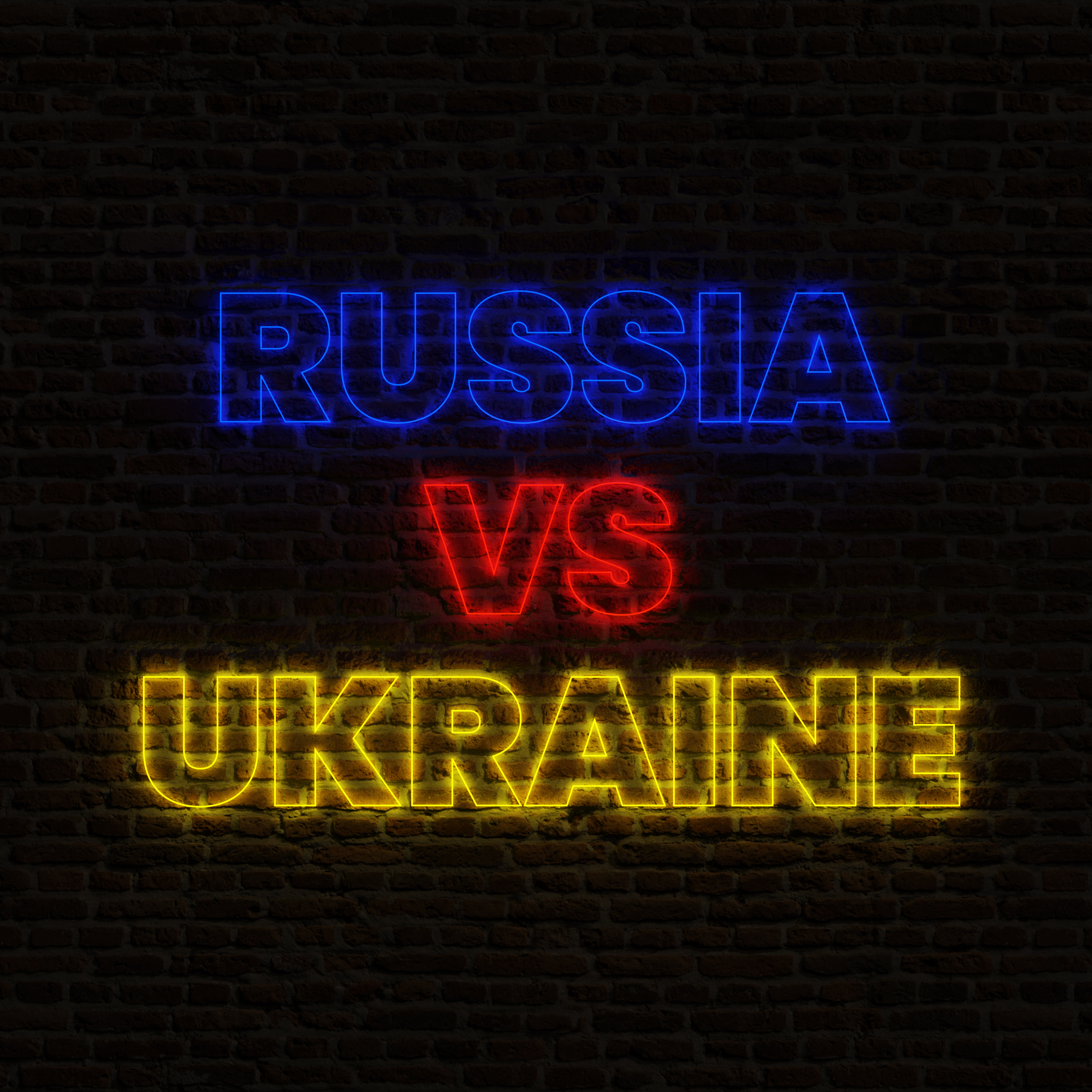 RUSSIA VS UKRAINE Neon Sign With Brick Background
