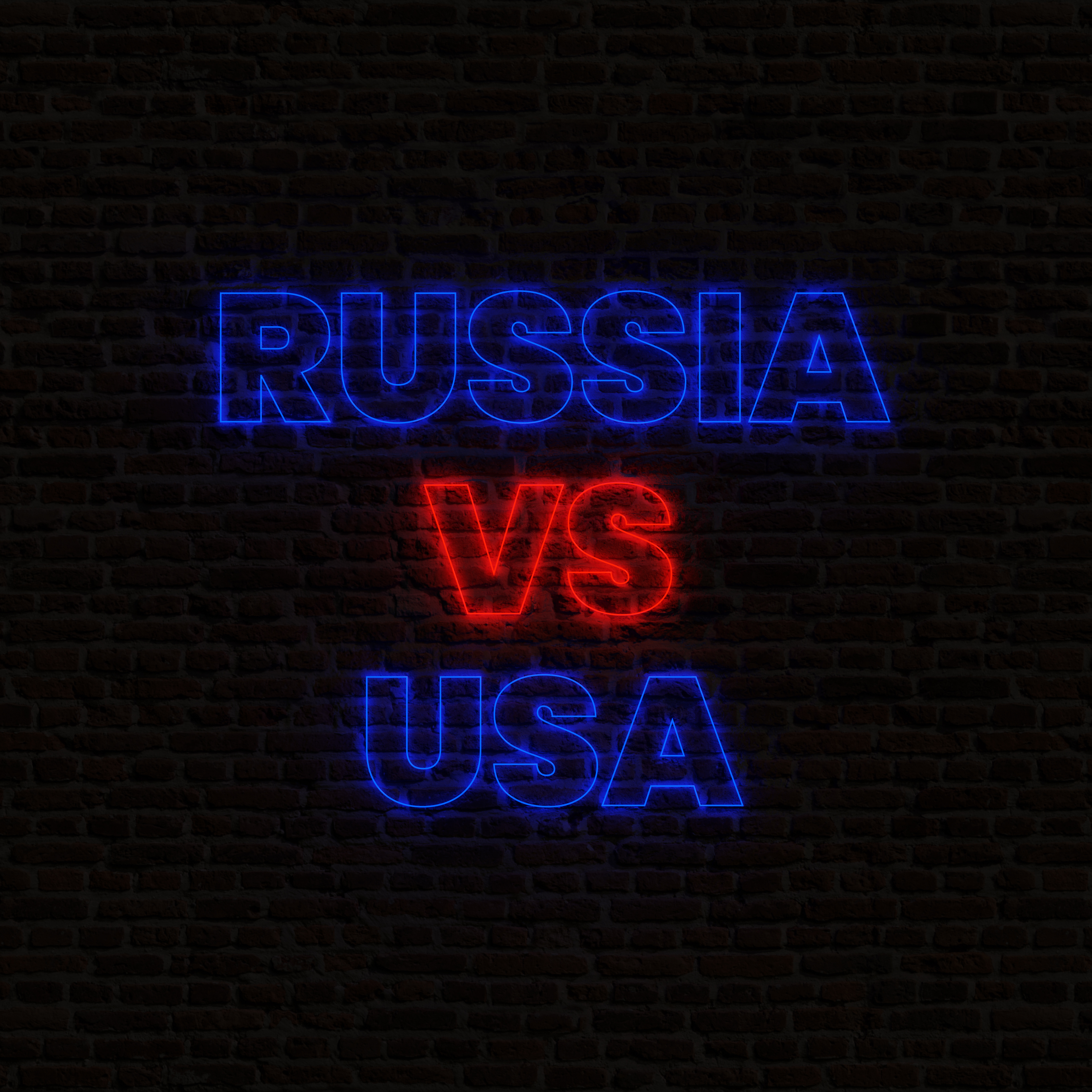 RUSSIA VS UKRAINE Neon Sign With Brick Background
