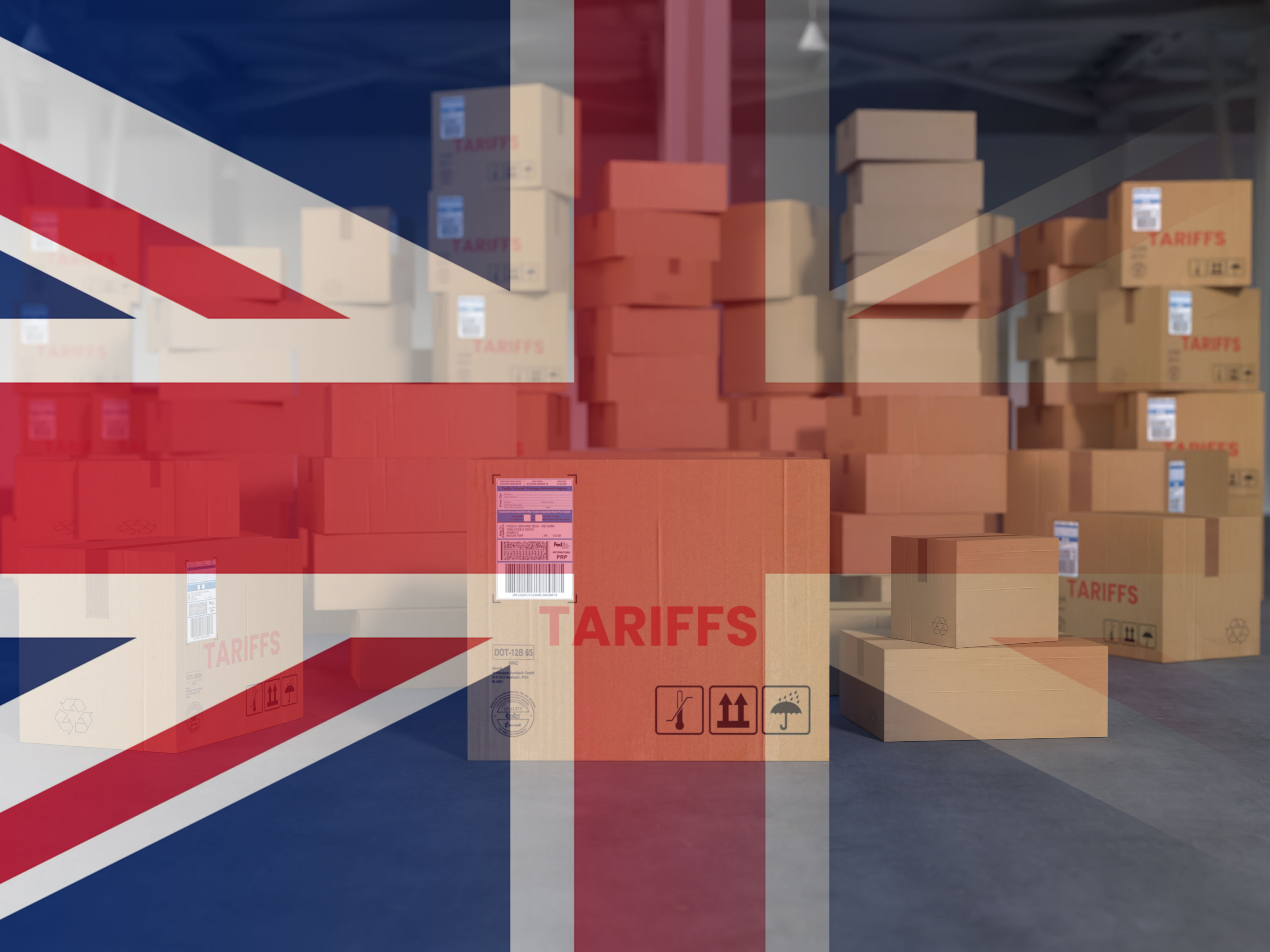 Collection: Tariff Label on Cardboard Boxes with Multiple National Flags