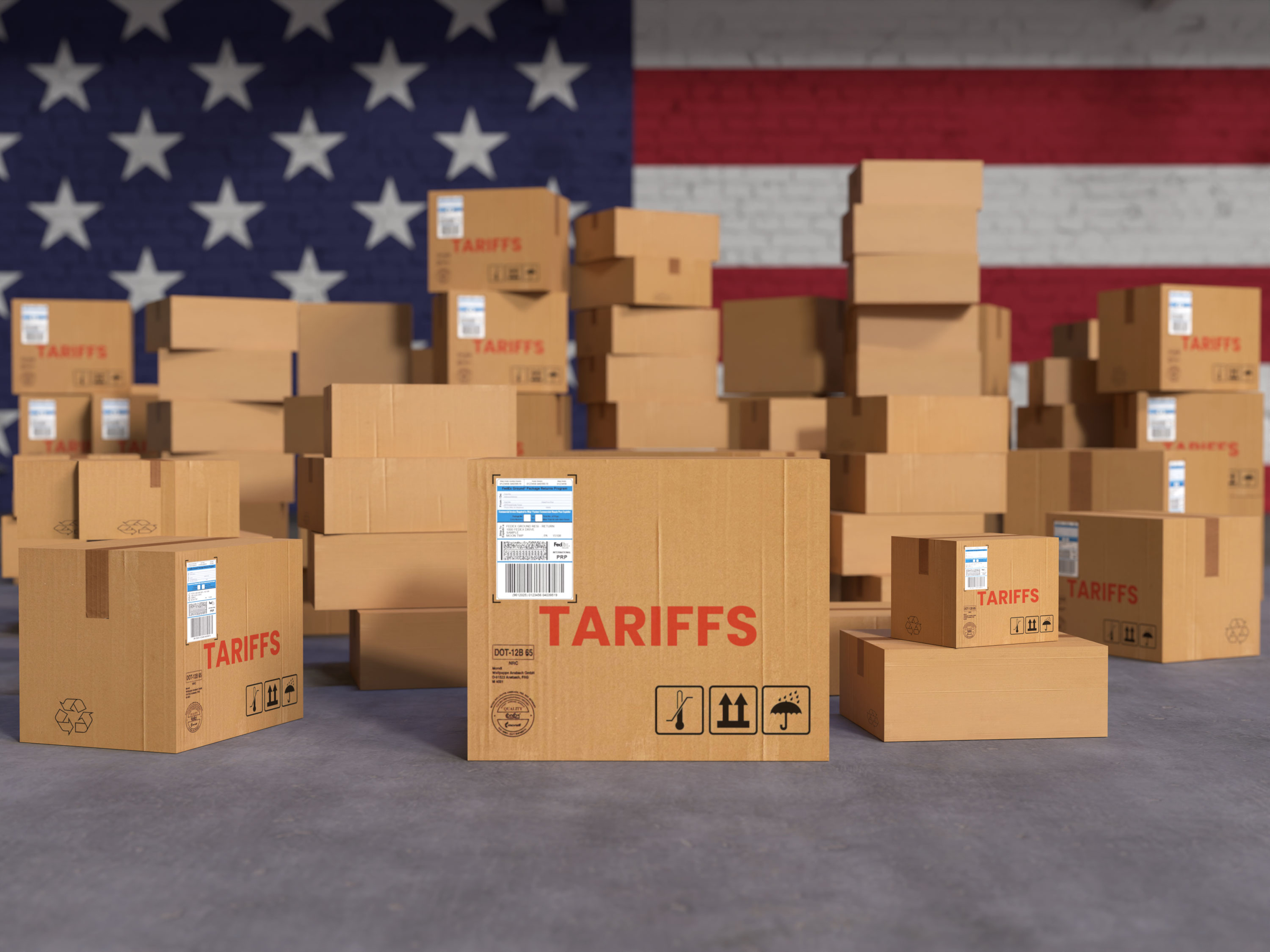 Collection: Global Trade Tariffs Concept with National Flags on Shipping Boxes