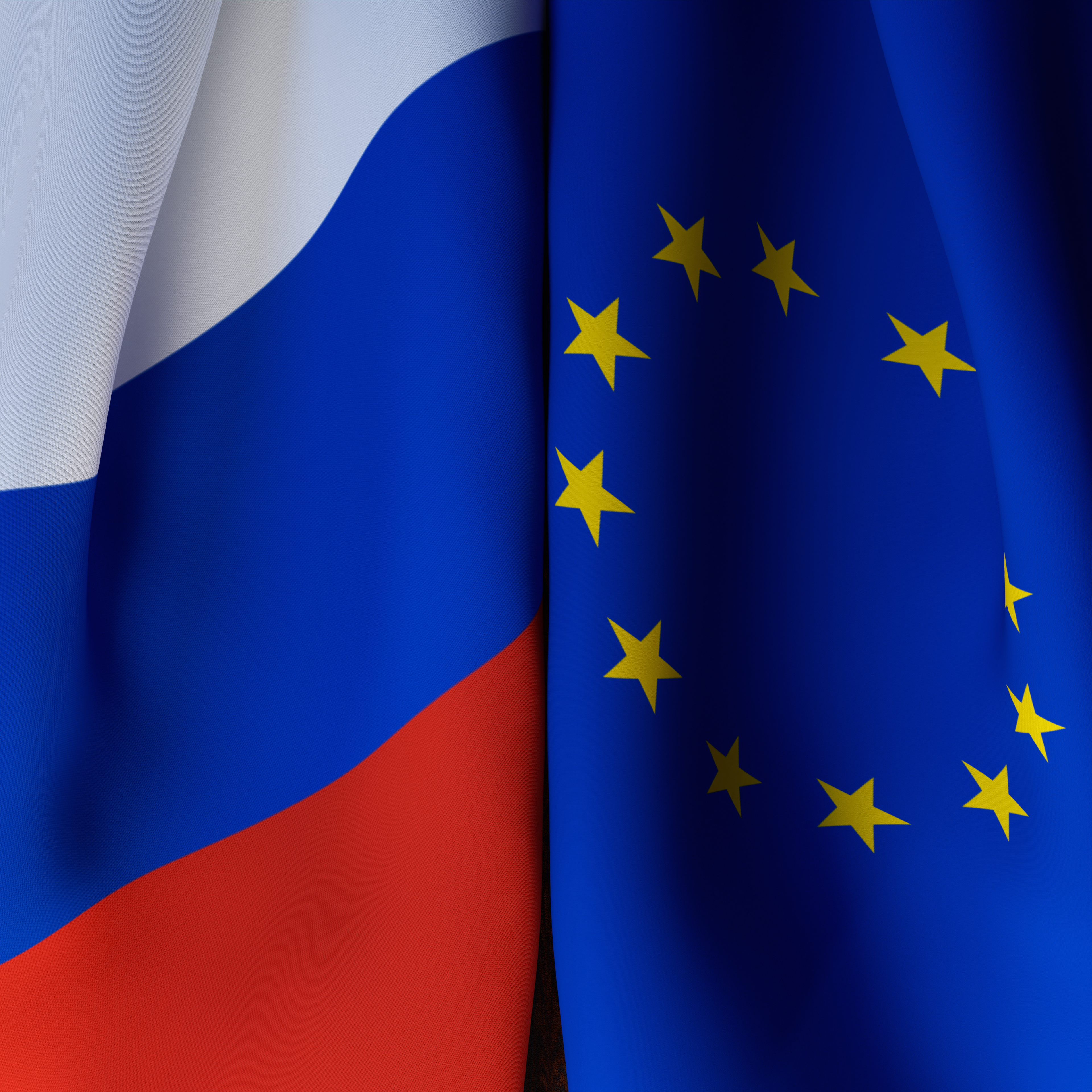 Waving Flags Of Russia And European Union