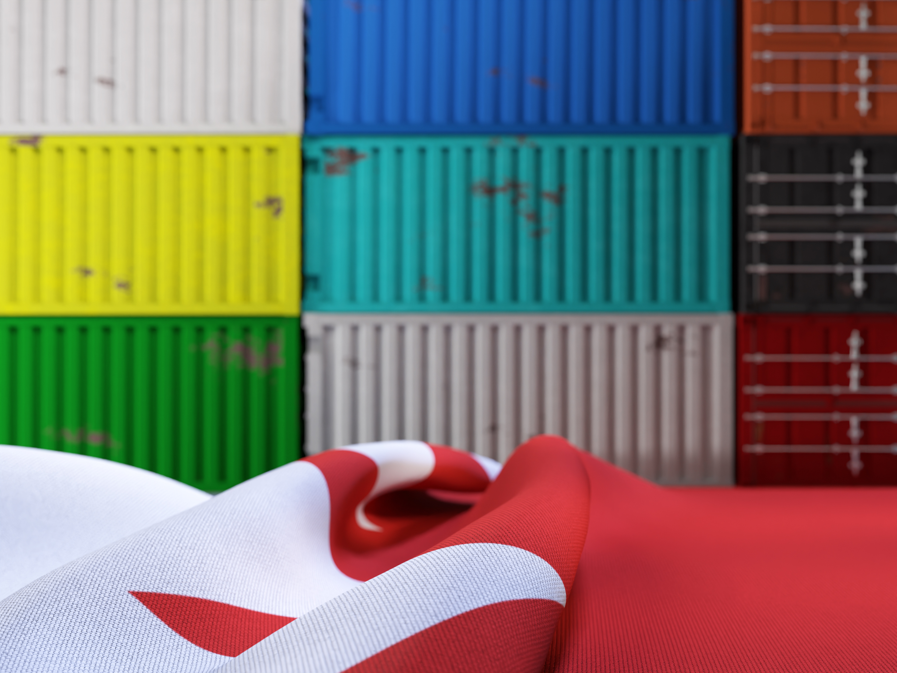Collection: Wrinkled Flag of Countries in Front of Shipping Containers