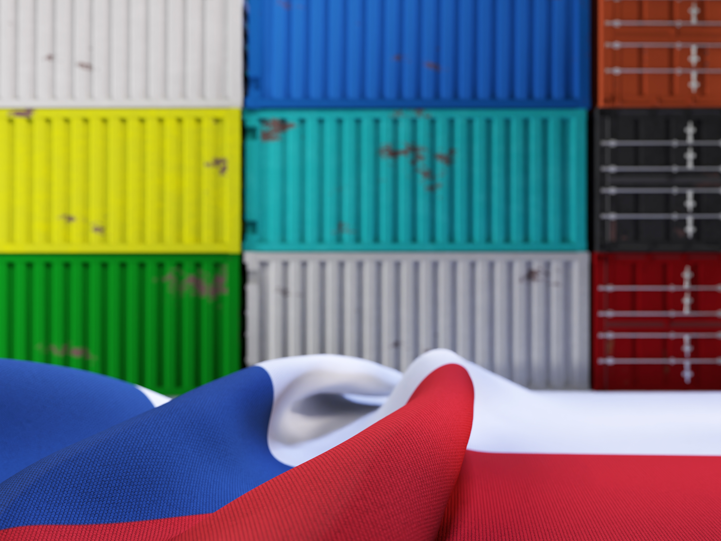 Wrinkled Flag of Czechia in Front of Shipping Containers