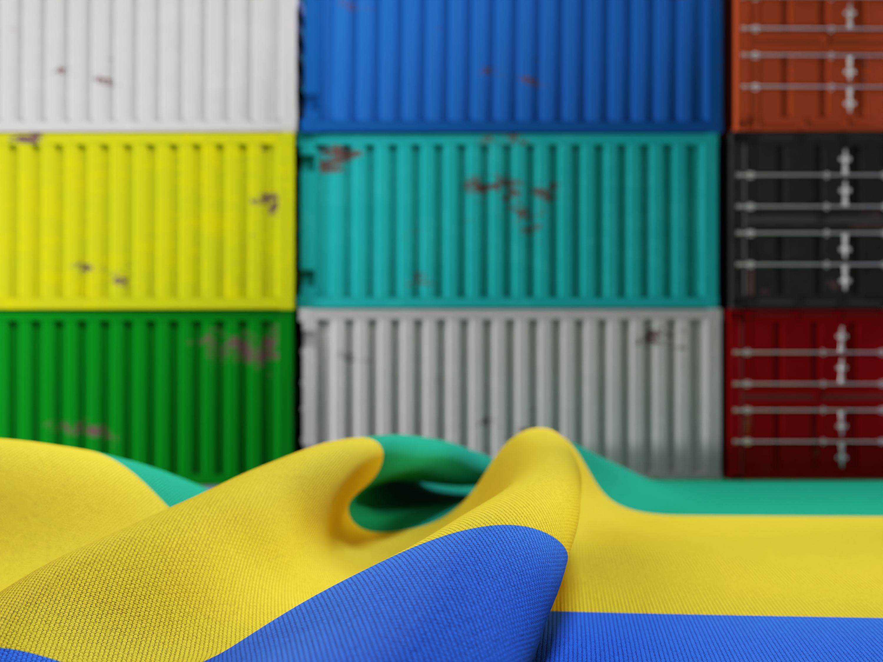 Wrinkled Flag of Gabon in Front of Shipping Containers