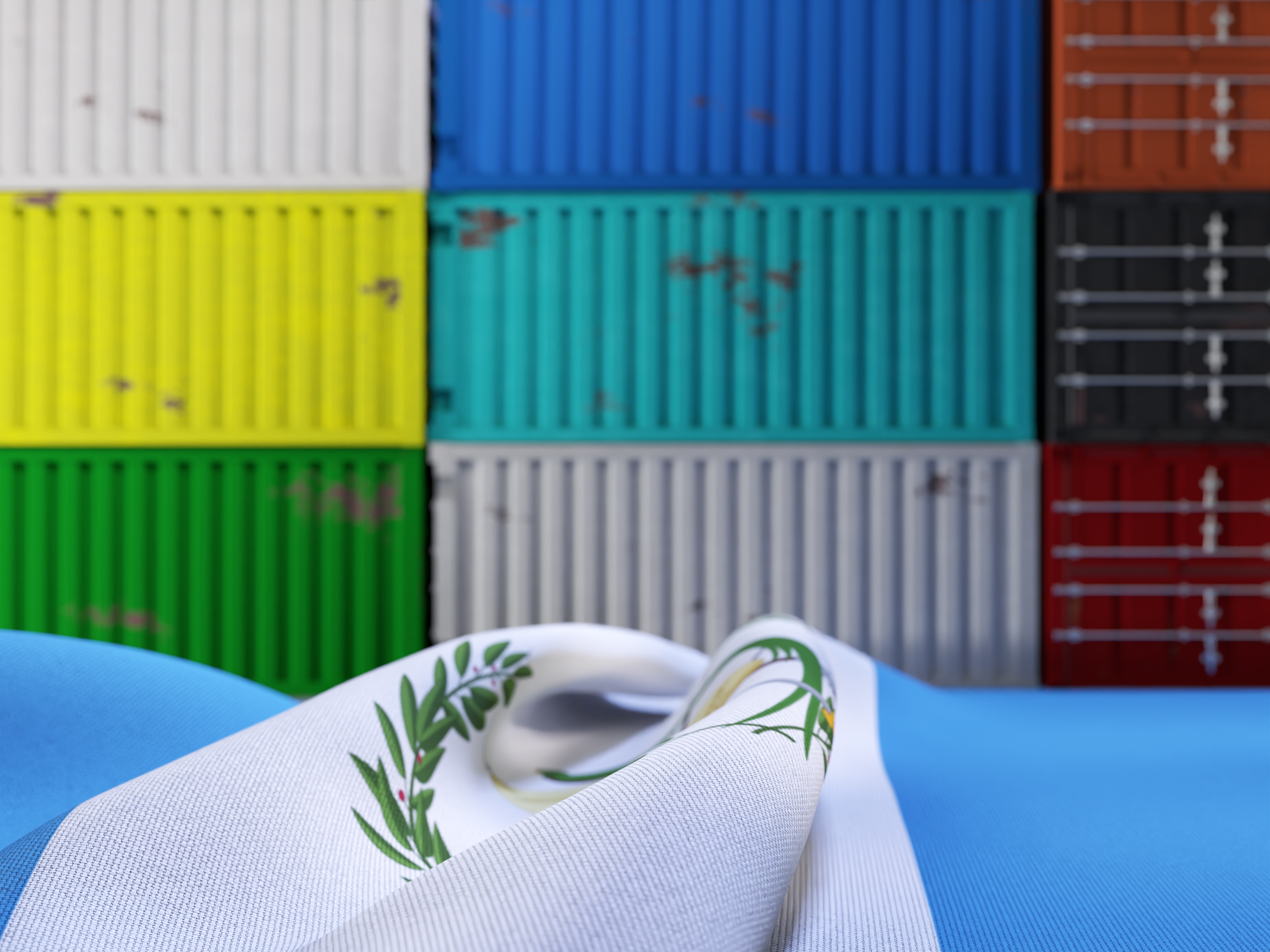 Wrinkled Flag of Guatemala in Front of Shipping Containers