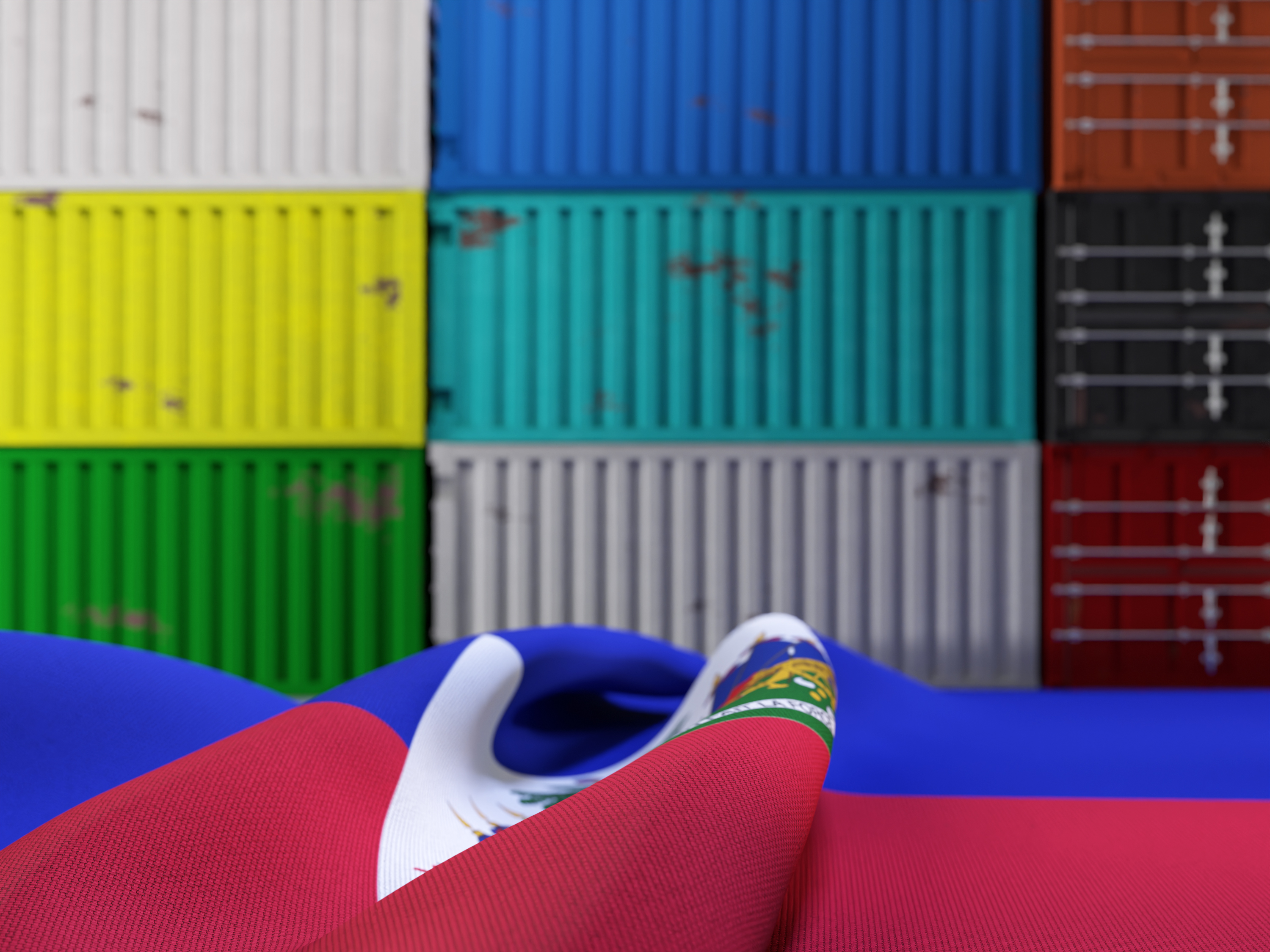 Wrinkled Flag of Haiti in Front of Shipping Containers