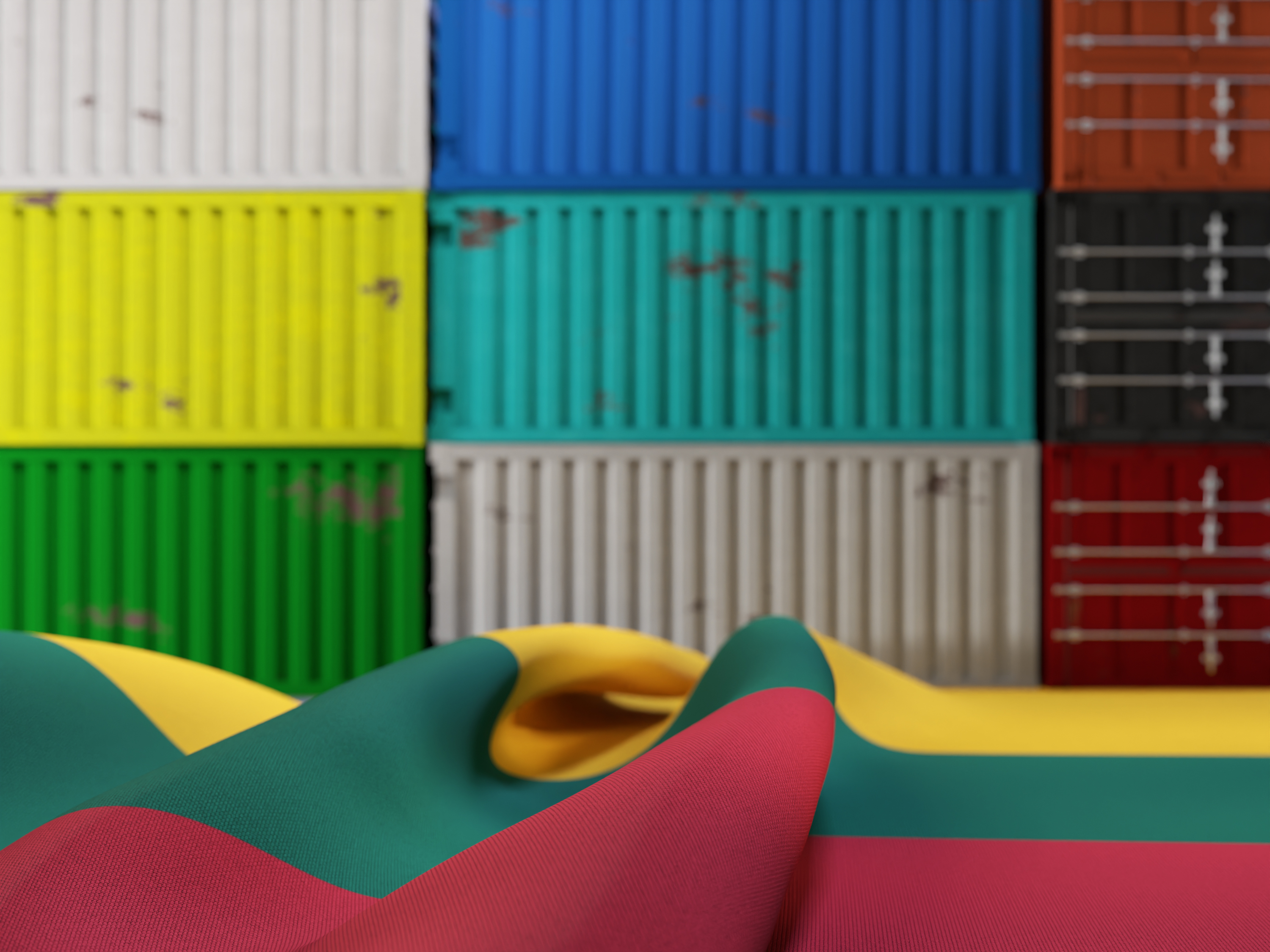Wrinkled Flag of Lithuania in Front of Shipping Containers