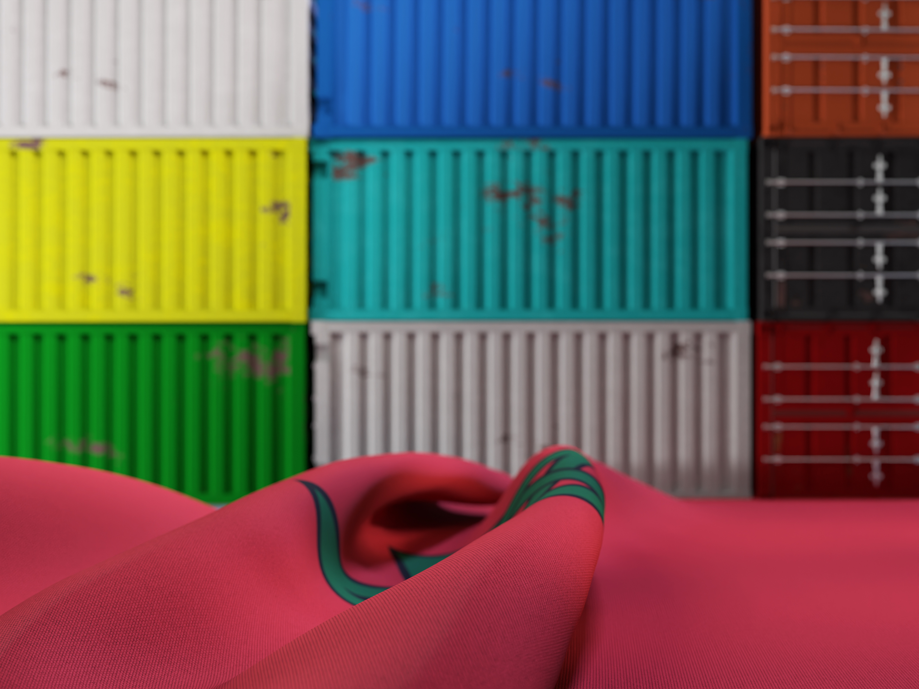 Wrinkled Flag of Morocco in Front of Shipping Containers