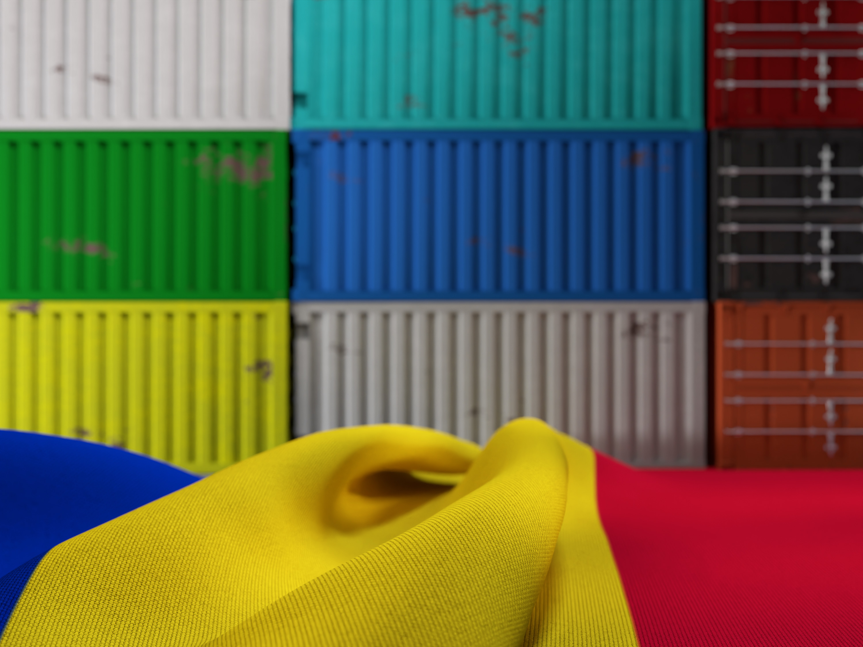 Collection: Wrinkled Flag of Countries in Front of Shipping Containers