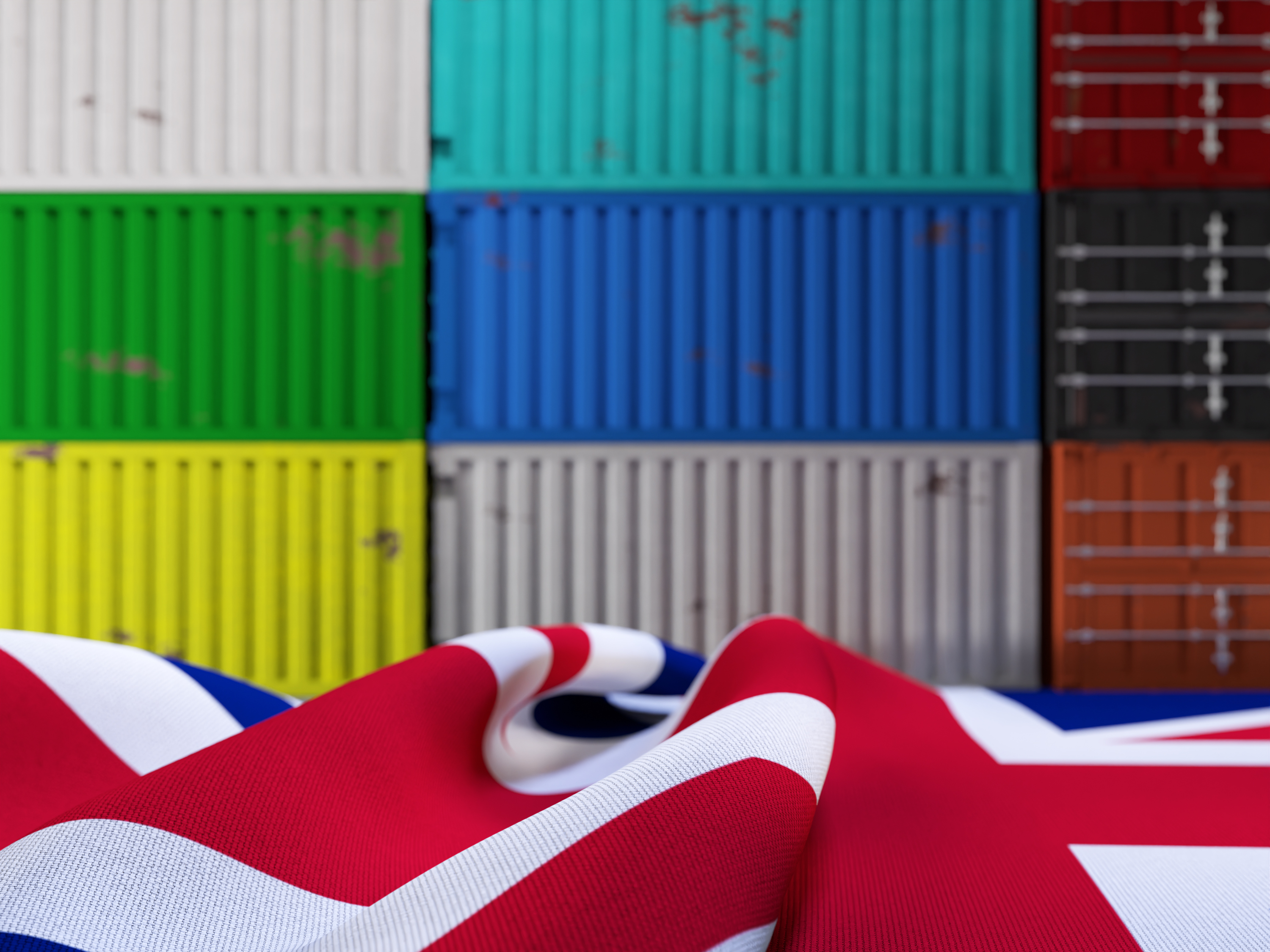 Collection: Wrinkled Flag of Countries in Front of Shipping Containers
