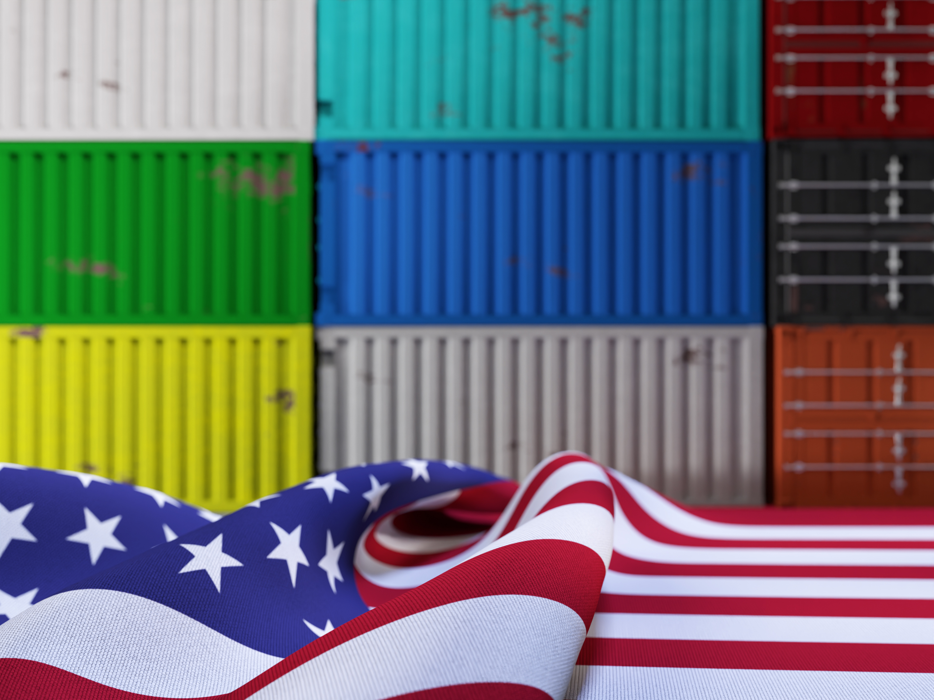 Collection: Wrinkled Flag of Countries in Front of Shipping Containers