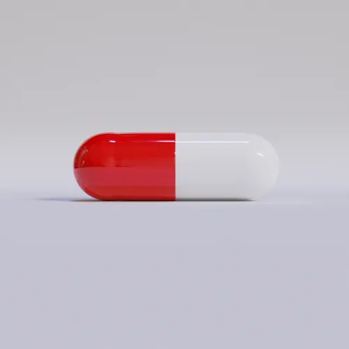 Vitamin K With Yellow Capsule, Granules and White BackgroundB1