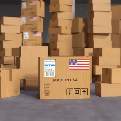 Tariffs Label on Cardboard Boxes